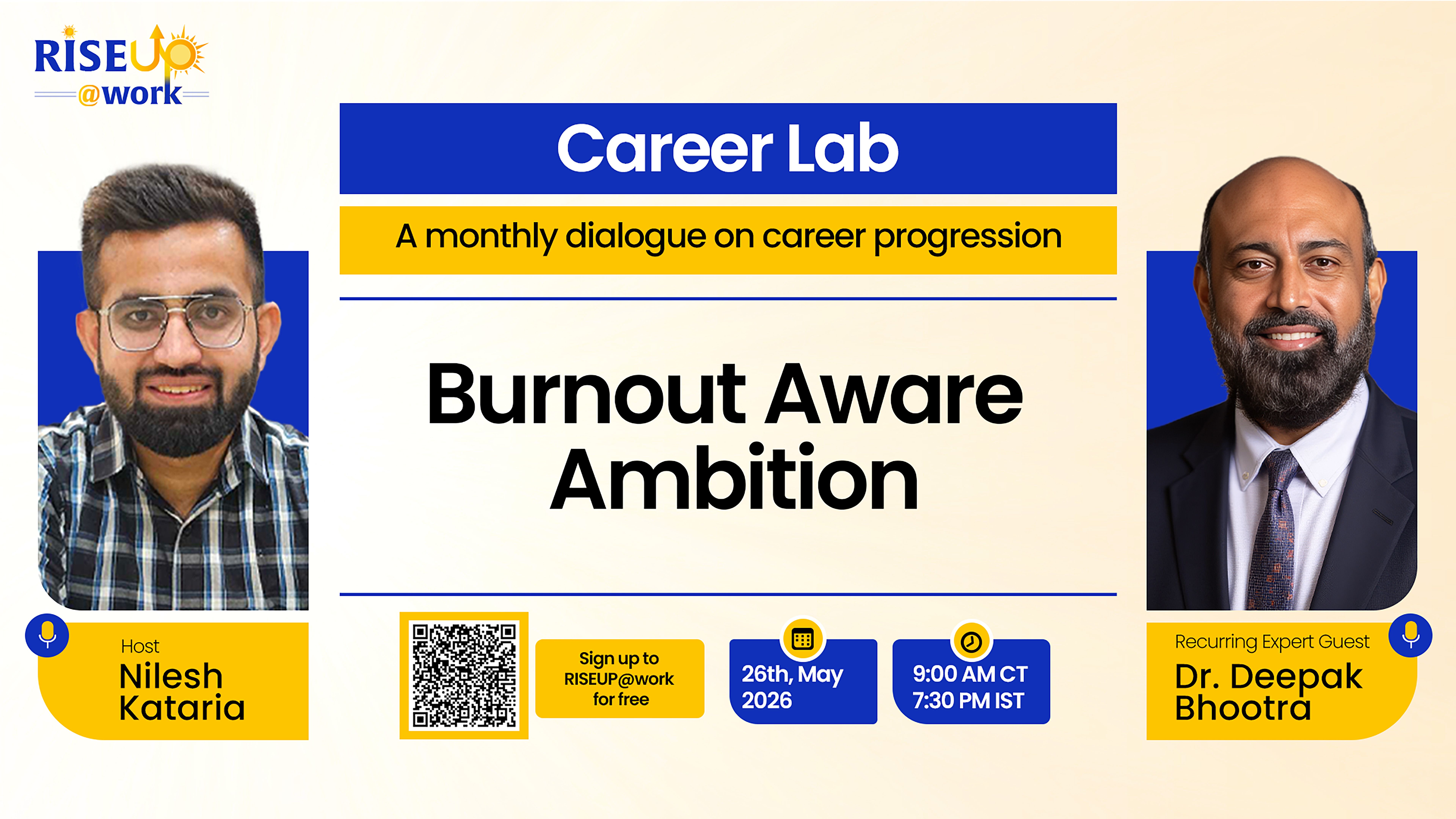 Ambition often gets framed as intensity, speed, and constant output. But many professionals discover that unstructured ambition leads to exhaustion rather than sustained progress. In this session of RISEUP Career Lab, Nilesh Kataria and Deepak Bhootra explore the concept of burnout-aware ambition. The conversation focuses on how professionals can pursue meaningful advancement while protecting energy systems, focus, and long-term sustainability. Instead of choosing between growth and well-being, the discussion examines how both can be designed together. The session introduces frameworks for sustainable career acceleration, helping professionals move forward without destroying the momentum required for long careers.